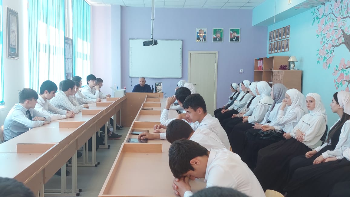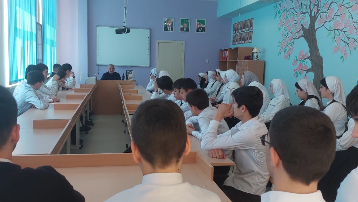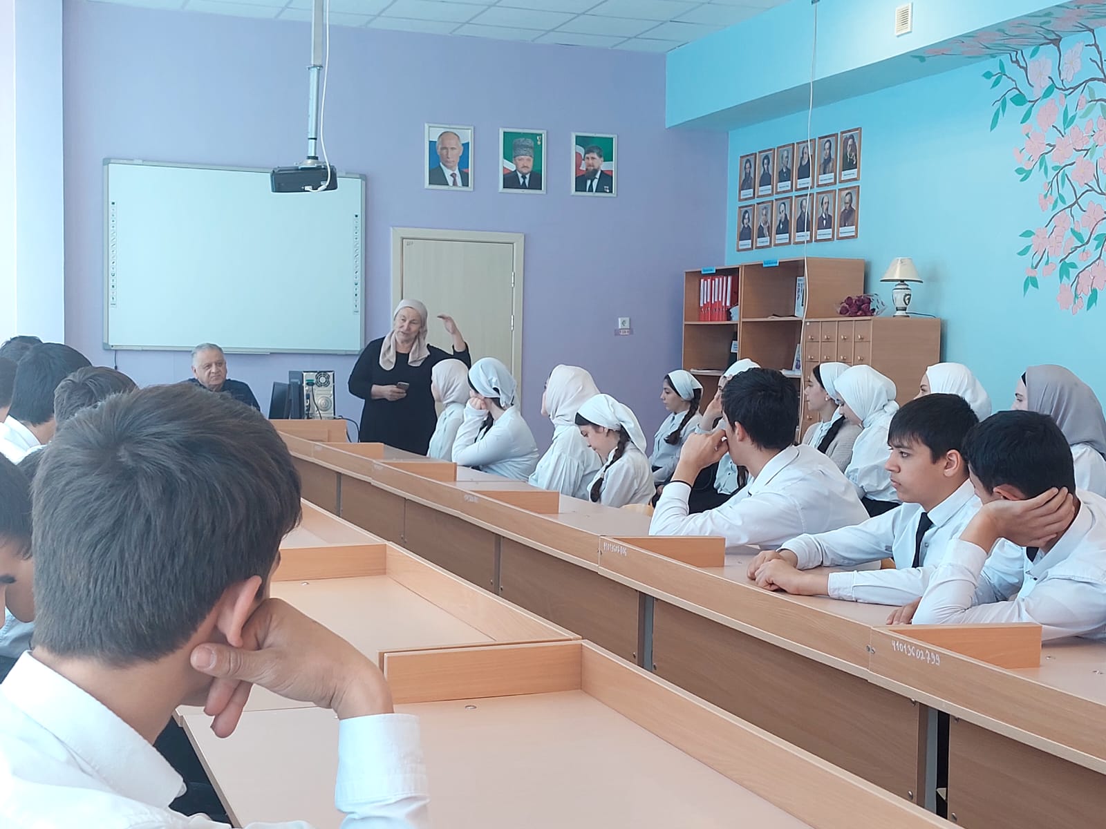 25.04.202225 апреля 2022 года в школе прошла II Всероссийская акция «Поделись своим знанием. Новые горизонты». Цель акции — показать школьникам, что трудности не мешают находить возможности для развития, а иногда даже помогают. Именно так добились успеха многие ученые, государственные деятели, люди творческих профессий и известные предприниматели. В школу, для выступления в качестве спикера был приглашён заслуженный учитель ЧР, главный специалист рессовета профсоюза образования ЧР по Курчалоевскому району Хошумов Им-Али Сайд-Магомедович. Торжественное открытие акции состоялось в режиме онлайн 25 апреля 2022 года в 10:00 по Москве по прямой трансляции.С приветственным словом выступил Первый заместитель руководителя Администрации Президента РФ Сергей Владиленович Кириенко, также первую лекцию провел министр просвещения РФ Сергей Сергеевич Кравцов.После онлайн- выступления прошел урок на котором Хошумов И.С. поделился с ребятами актуальными знаниями и опытом, рассказал о перспективах научной деятельности, культуры и искусства, физической культуры и спорта, новых профессий и других направлениях развития, подсказал как достигнуть успеха в быстро меняющихся условиях окружающего мира.