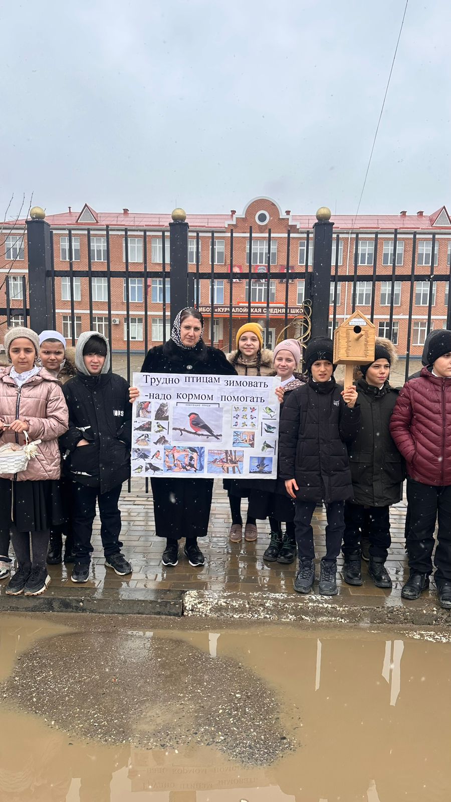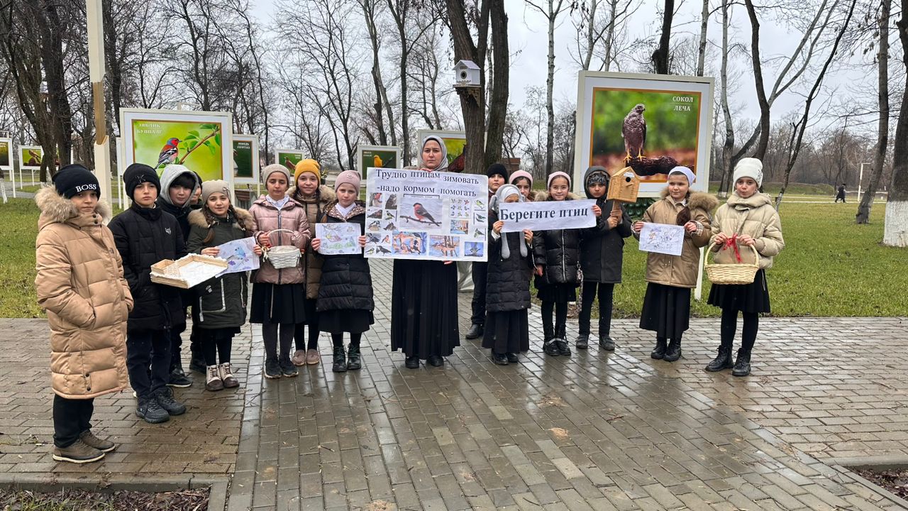 15.11.2023В рамках реализации национального проекта «Образование», федерального проекта «Современная школа», 15 ноябре 2023 г. в МБОУ «Курчалойская СШ №4» советник директора Хасханова Яха Абубакаровна , провела акцию среди обучающихся начального звена на тему: «Трудно птицам зимовать – надо птицам помогать». Цель: Расширить представления детей о птицах, об условиях их жизни. Продолжать учить узнавать птиц по внешнему виду, повадкам, пению, закрепить понятие о необходимости помогать птицам в холодное время года.Воспитывать в детях доброту, приучить их заботиться о птицах, наблюдать за ними. Испытывать радость от сознания, что, подкармливая птиц, можно спасти их от гибели.