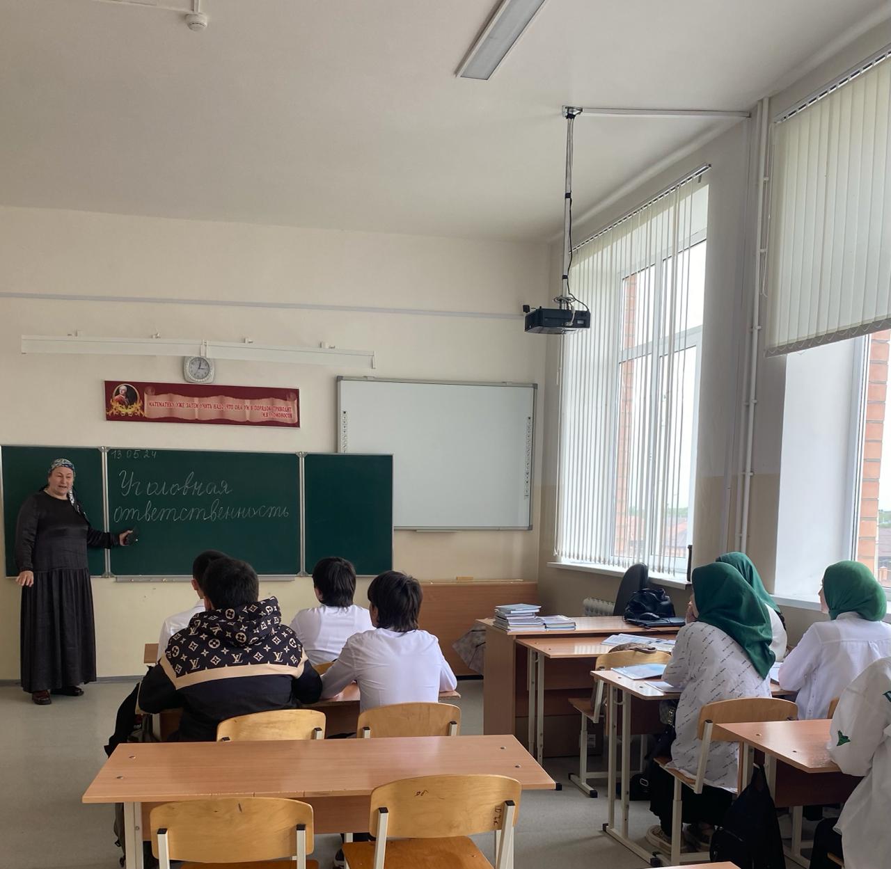 В МБОУ «Курчалойская СШ4» проведены беседы на тему: « Правонарушения и ответственность за них» (5-8 классы), «Уголовная ответственность несовершеннолетних» (9 класс).