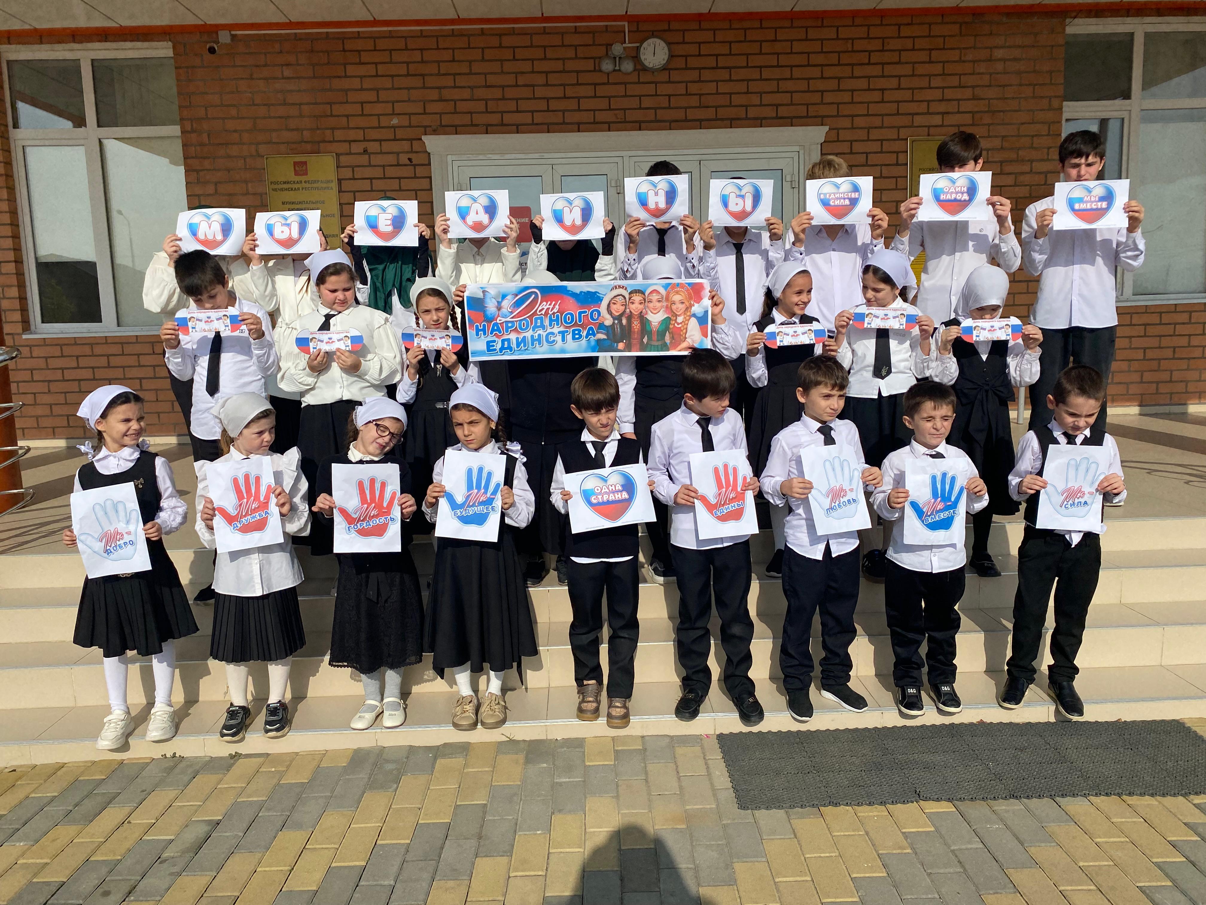 24.10.2025В целях популяризации идеи единения многонационального народа Российской Федерации через любовь к Родине, к своему народу, к своей истории, согласно плану работы школы 24 октября в МБОУ «Курчалойская СШ№4» были проведены мероприятия, посвященные Дню народного единства. В мероприятиях приняли участие обучающиеся 1-11 классов. В ходе мероприятий обучающиеся познакомились с историей возникновения праздника, подвигами наших предков во имя независимости Родины. Проведенные мероприятия стали возможностью напомнить нам всем о наших общих корнях, в полной мере осознать, что единство народов во все времена было и остаётся главной национальной идеей России, залогом её достойного будущего, понять, что для того, чтобы добиться национального успеха, все мы должны быть вместе, независимо от возраста, рода занятий, национальности и политических пристрастий.