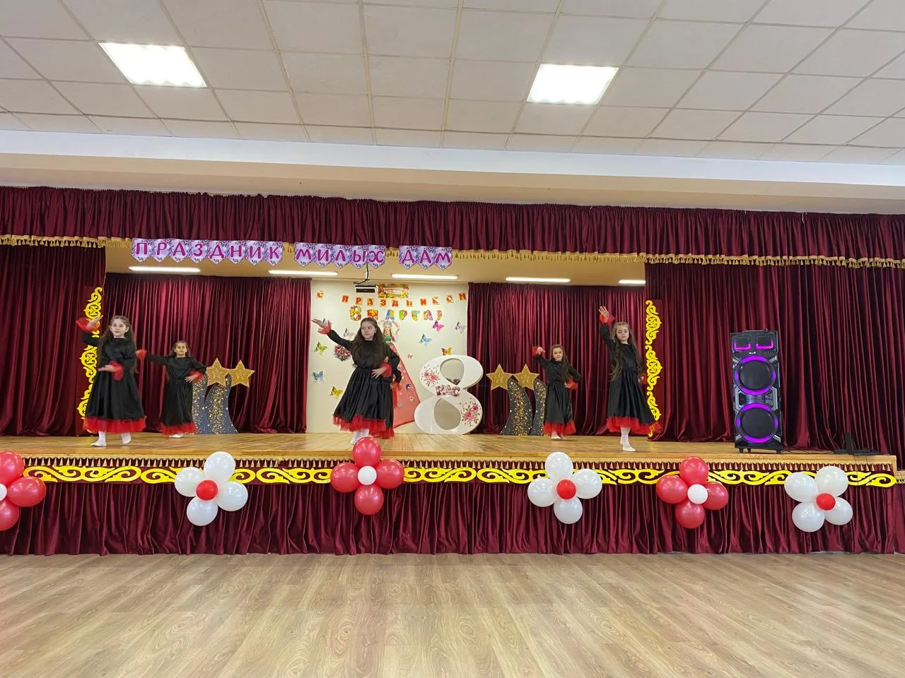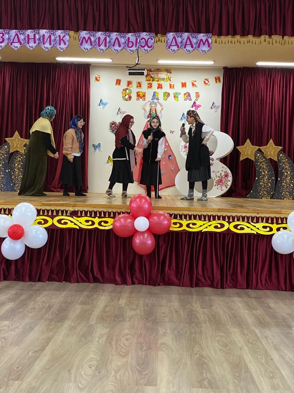 Учащиеся МБОУ Курчалойской СШ /4 подготовили для любимых учителей и мам яркую концертную программу, наполненную песнями, стихами и танцами.
